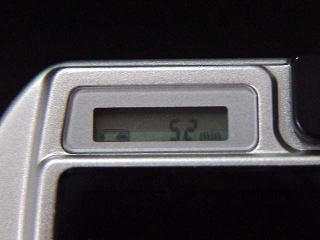 液晶モニタの上には、モノクロ液晶で充電の残り時間等が表示されるようになっています。 充電中、電源を入れなくても残り時間が表示されるのはけっこう便利。 |
