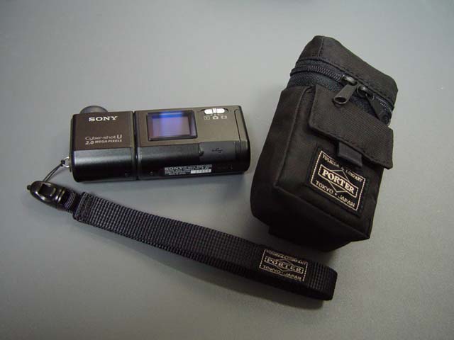 Sony Style 購入特典の吉田カバン製ケースおよびストラップ。ケースは PORTER らしいというか PORTER の定番的形状で、フロントにはメモリースティック Duo の入るポケットがついています。小さい割に作りはいいかな?高いですが(笑)