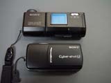 レンズとは逆側の本体側面にカバーがあり、その中に単四型ニッケル水素電池×2(単四型アルカリ乾電池も使用可能)、メモリースティック Duo を挿入する仕組みは従来同様。今回が初のメモリースティック Duo 専用デジカメとなったのが注目点でしょうか(カメラ付き携帯電話もデジカメの一種と考えれば、D251i や SO505i などにすでに採用されていますが)。メモステ Duo はノーマルメモステより厚みや長さがないため、出し入れが少ししにくいのが難点ですが、メモリースティックよりさらにコンパクトで携帯機器に適しているというメリットがあります。同時になくしやすいというデメリットもありますが(笑