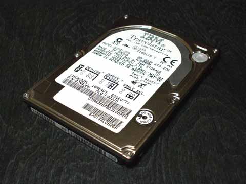 これが IBM「DJSA-220」。2.5 インチ、9.5mm 厚で 20GB の HDD です。前モデル「DARA-212000」から容量以外の基本仕様はあまり変わっていないはずなのに、型番が大幅に変わってしまっています。何故? しかし 505EX 標準の HDD は約 2GB でしたから、2 年半で約 10 倍に容量アップしたことになります。デスクトップ機だって 1999 年まで私が使っていた HDD は 10GB だったというのに・・・こうしてみると隔世の感がありますね。 |