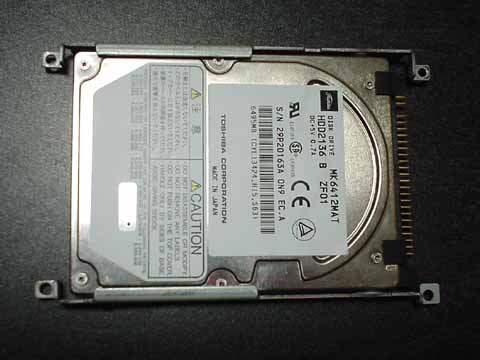 「IBM DARA-212000」が 505EX で動作したことで、「これなら 20GB でもいけるのではないか?」と思い買ってみました。Win98/2000 をデュアルブートにしていたこともあり、MK6412MAT では最近ちょっと手狭になっていたので。で、試してみたところ案の定上手く認識できたので、505 に 9.5mm 厚の HDD を取り付ける手順と合わせてここでご紹介します。 ※各画像をクリックすると大きい画像が表示されます。 |