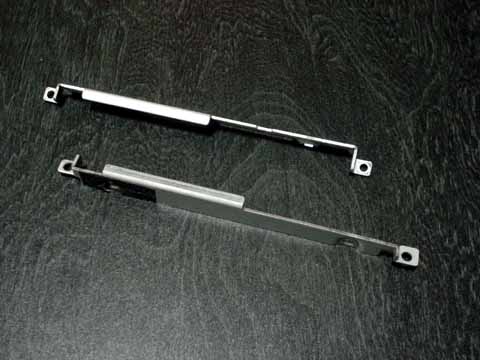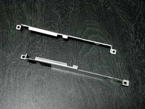 取り付け金具自体はこんな感じになっています。この金具、HDD の上面に少し覆い被さるように折り曲げられているのですが、この部分が HDD についているねじ(側辺の中央付近についているもの)と干渉してしまい 9.5mm 厚の HDD に上手く取りつけられません。で、この干渉する部分を切り取ってやろうというお話です。 | ||||||||||||||||||||||||||||||||||||||||||||||||||||||||||||||||||||||||||||||||||