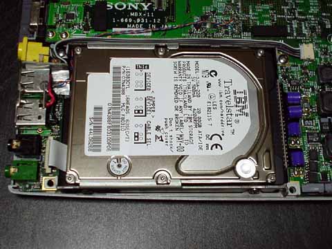 ドライブに加工した金具を取り付け、505 に取り付けるとこんな感じになります。まだ少し HDD のケースと干渉しているのか、微妙に金具がたわんでいる気がしますが私はあまり気にしていません。 ちなみに、8.45mm の HDD を使っていたときについていたゴム製の緩衝材は取り付けると却って 505 の筐体と干渉しそうだったので使っていません。むしろ 9.5mm 厚の HDD を取り付けた状態だと微妙にキーボードに遊びが発生したため、マザーボードとキーボードの間に挟む緩衝材として再利用しました(もともとついていたマザーの緩衝材の上に取り付けた感じですね)。 |