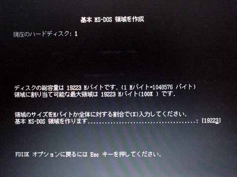 すると 20GB の全領域が DOS から見えるようになるので、起動 FD から起動し、FDISK を使ってパーティションを設定、再起動後、BIOS 画面から今度は Cylinders の値を「4200」など 16383 以下の適当な値に設定します。 私は FDISK のときに 3 パーティション(基本パーティション 1、論理パーティション 2)に設定したのですが、再起動後なぜか論理パーティションの方が(拡張パーティションごと)なくなるという現象が発生しました。Cylinders の値を 4200 で起動した後に FDISK で論理パーティションを設定しなおしたのですが、基本パーティションを設定した後ならば Cylinders の値が 4200 でも FDISK が通るんですね。しかしなぜ論理パーティションが消えてしまったかは不明・・・。とりあえず問題なく動いているのでよしとしましょう。 ちなみに、東芝の 20GB ドライブ「MK2016GAP」の場合も基本的に同じ方法で使えるはずです。 |